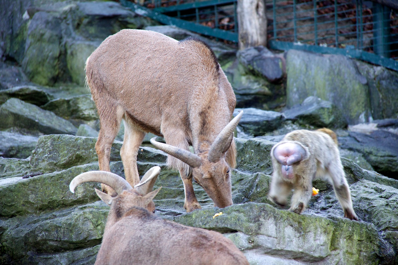 Berberaffe und Mähnenspringer